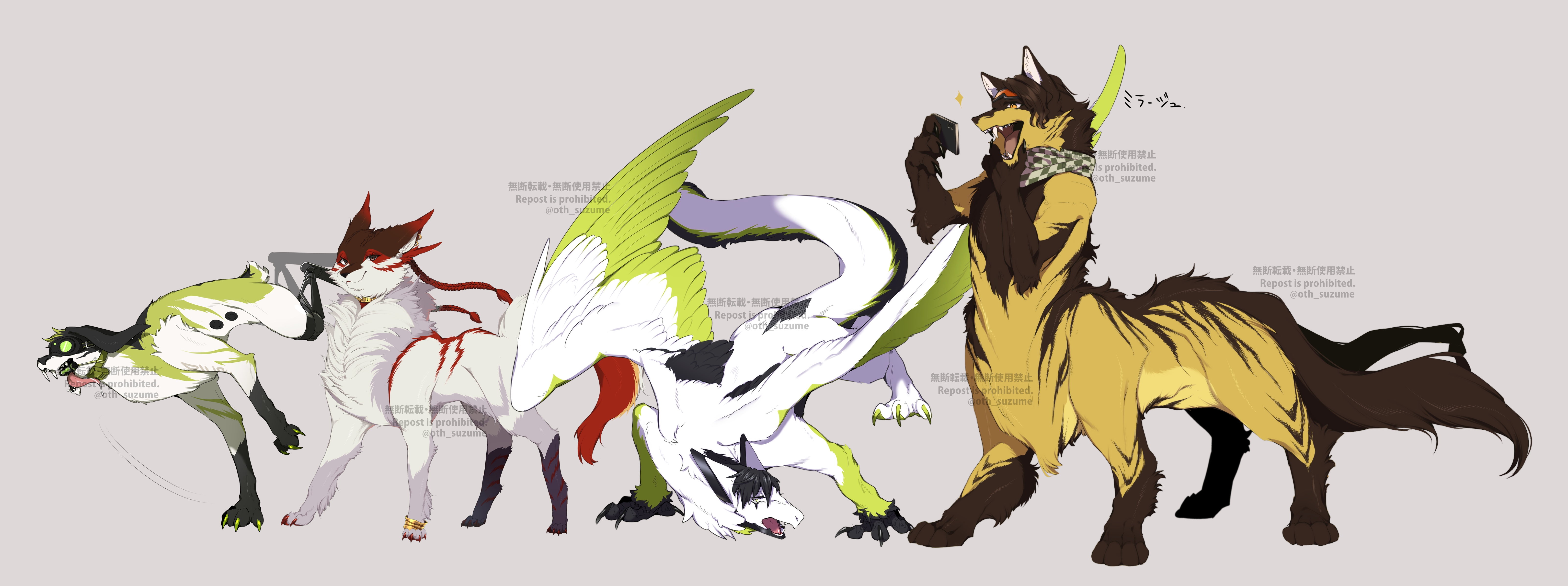 自分のデザインとか世界観にはどうしても理由付けというか合理性を求めちゃうタチなので「擬『人』化は人になるんだからなんだから獣耳とかなくない?」、「獣って飼育されてなければ服着なくね?」的な事を考えてるので基本その考えに則ってデザインしてる